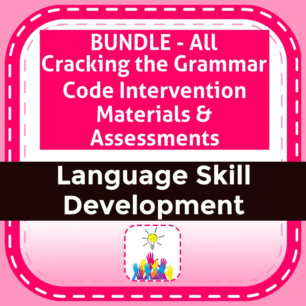 This is the complete collection all of the instructional packets that address pretests and intervention for syntax knowledge covered in Cracking the Grammar Code: 1) Verbs 2) Nouns 3) Articles 4) Conjunctions 5) Adjectives 6) Adverbs 7) Prepositional Phrases 8) Subject-Verb Agreement. Includes functional Assessments for all areas. Bundle IDs 0599, 0609, 0617, 0621, 0625, 0629, 0634.