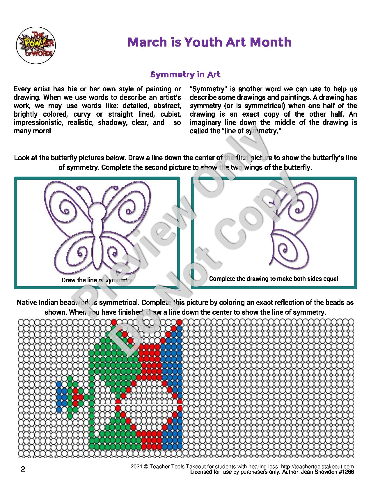 Shop Now| These worksheets and activities are a fun way to introduce new vocabulary, start a discussion, and extend a lesson on art and people being artists. Includes language regarding symmetry in art and original doodle art. Print and do activities. |